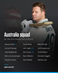 ایشیز کی جوش و خروش میں اضافہ ہوتا جا رہا ہے جیسے جیسے میچ کا دن قریب آ رہا ہے۔ آسٹریلیا نے پہلے ٹیسٹ کے لیے اپنی ٹیم کا اعلان کر دیا ہے۔ پیٹ کمنز کی غیر موجودگی میں اسٹیو اسمتھ قیادت کے فرائض انجام دیں گے۔