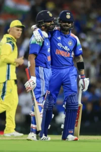 رن چیس میں بھارت نے صرف ایک وکٹ کے نقصان پر 38.3 اوورز میں ہدف حاصل کر لیا۔ شبمن گل 24 رنز بنا کر آؤٹ ہوئے، مگر آج بھارتی کرکٹ کی مشہور جوڑی روہت شرما اور ویرات کوہلی مکمل فارم میں نظر آئی۔