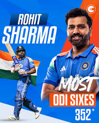 روہت شرما اب ون ڈے کرکٹ میں 352 چھکوں کے ساتھ سب سے زیادہ چھکے لگانے والے کھلاڑی بن گئے ہیں۔ انہوں نے لیجنڈری پلیئر شاہد آفریدی کا 351 چھکوں کا ریکارڈ توڑ دیا ہے۔