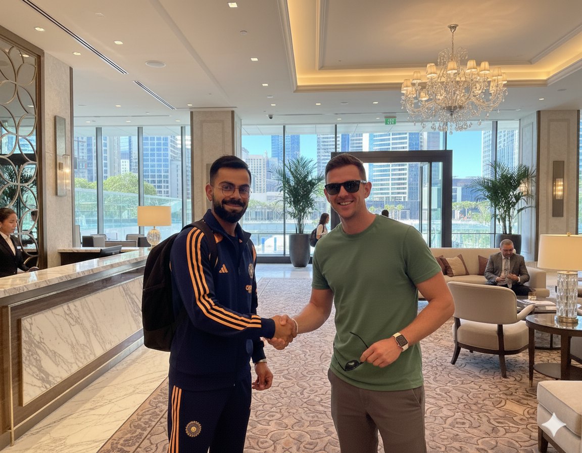 ویرات کوہلی سیریز کے لیے آسٹریلیا پہنچ گئے، جوش ہیزل ووڈ کے ساتھ تصویر